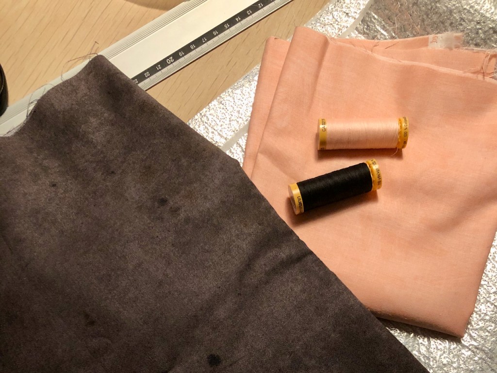 NB! Det er et poeng at både stoff og tråd er i bomull (ikke polyester, eller annet syntetisk materiale). For vottene skal jo helst ikke smelte eller lede varme. Da er poenget med dem litt borte.