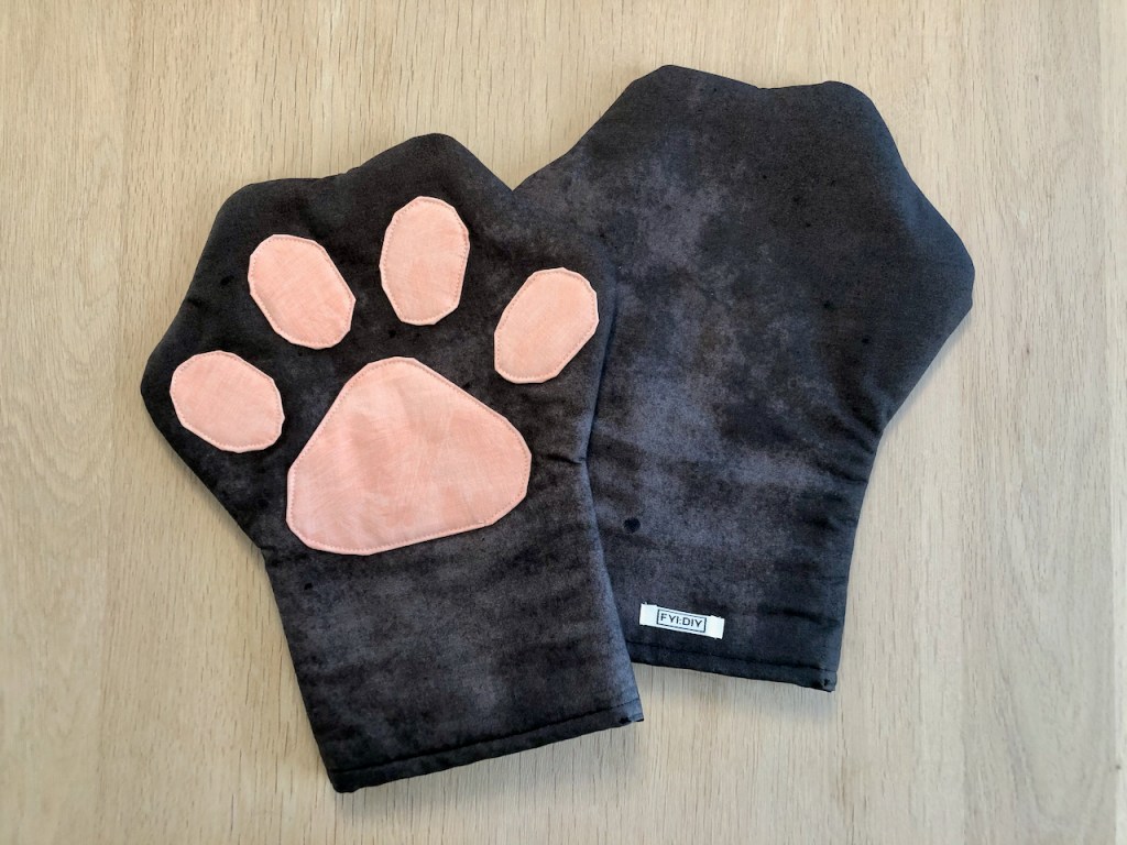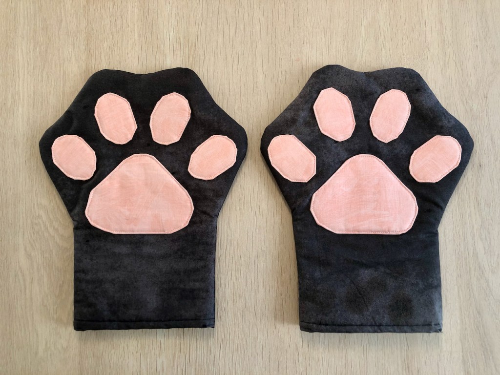 Disse grillvottene sydde jeg til min katteelskende svigerinne til jul, og av en eller annen grunn har jeg ikke rotet meg til å skrive om dem før nå. Men grillvotter er da minst like aktuelle nå som det nærmer seg sommer!