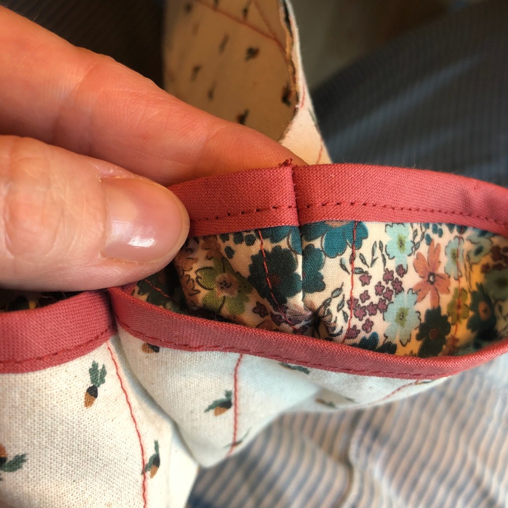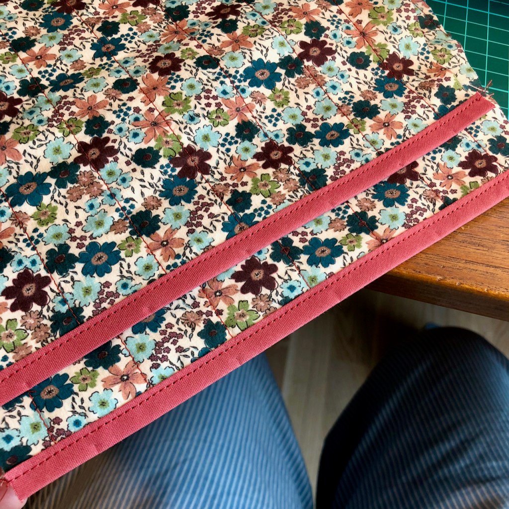 Jeg fant en oppskrift fra Stoff & Stil (Selfmade?). Og selv om jeg ikke er noen erfaren syerske, var denne oppskriften relativt grei å forstå. Den største utfordringen var å sy skråbånd rundt de runde hjørnene, uten at det ble no krøll. Men med litt tråkling og tålmodighet, gikk det fint til slutt.
