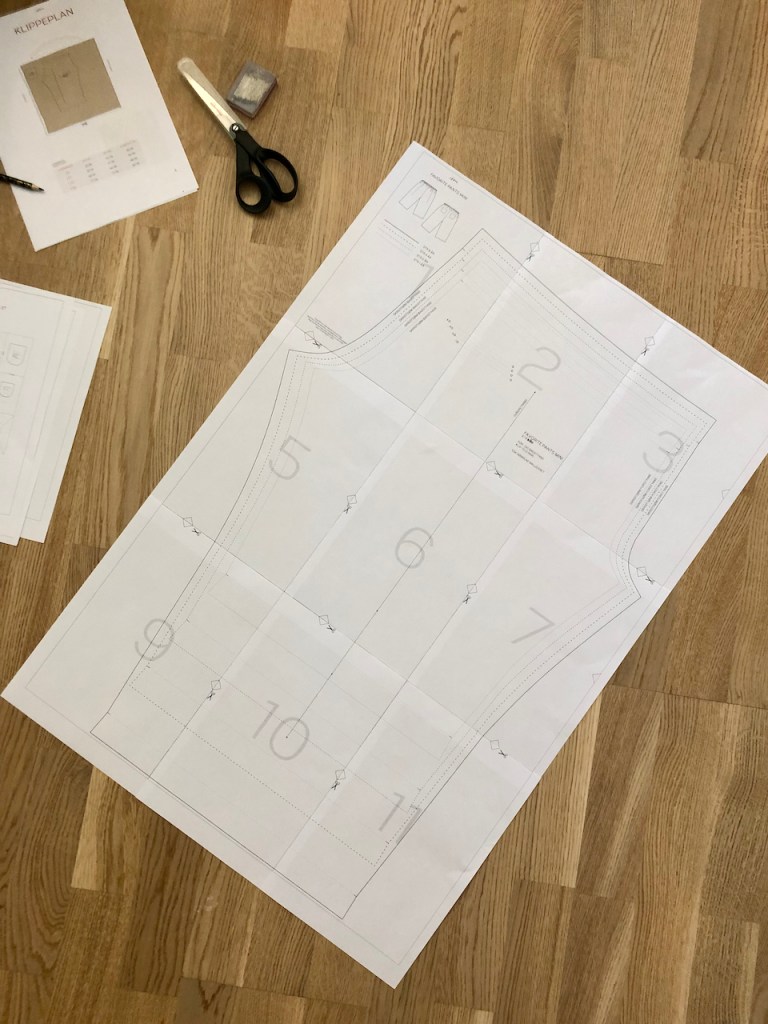 Du legger kanskje merke til at det står «Easy» på mønsteret? Til info: ingenting ved dette mønsteret var «easy». Det jeg knotet mest med, var nok å sy på ermene. Prøv å sy en uelastisk bue til en annen uelastisk bue. På vranga. Uten at det krøller seg til. Og uten at du syr over deler av stoffet som du ikke skal sy over. Jeg vet den dag i dag ikke hvordan jeg endte opp med å få det til. Men det tok noen forsøk. Såpass kan jeg si.