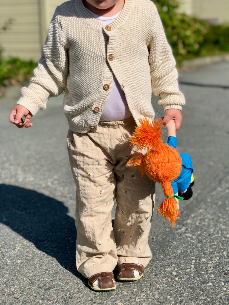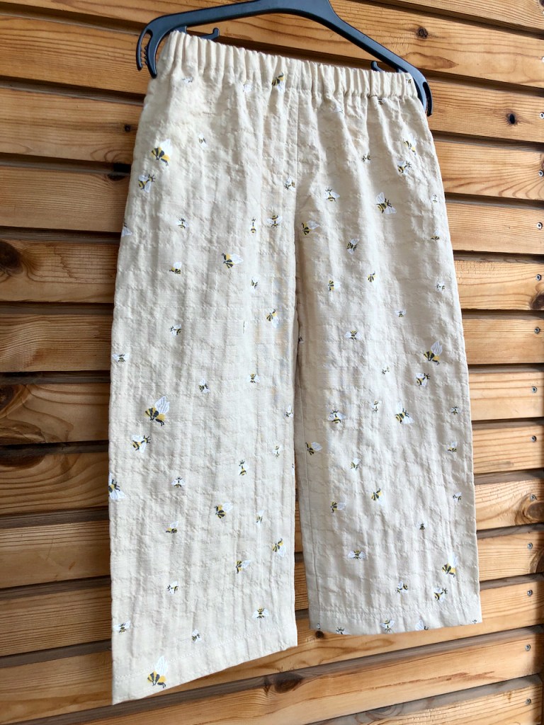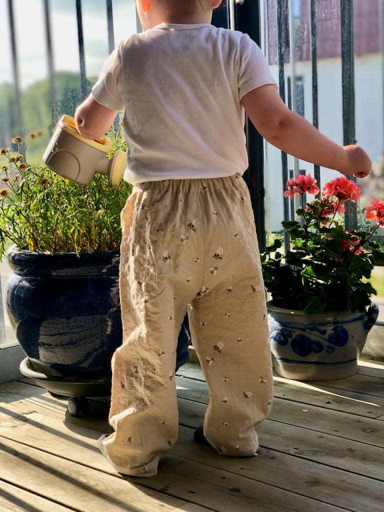 Tidligere i sommer var jeg på jakt etter en tynn og lett bukse til datteren min. Jeg trodde nemlig jeans, tights og joggebukser skulle bli for varmt i ferien (jeg tok feil). Uansett: Jeg kom over dette nydelige mønsteret, og nå kan jeg masseprodusere bukser fremover. Makan til enkel oppskrift. Print, klipp, sy. Det er rett og slett bare to bukseben sydd sammen, med et strikk i toppen! Takk, Sōm