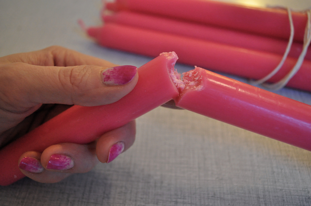TIPS: Det kan også være lurt å ha en tang i nærheten, i tilfelle det er vanskelig å få veken ut av lysene som skal smeltes.