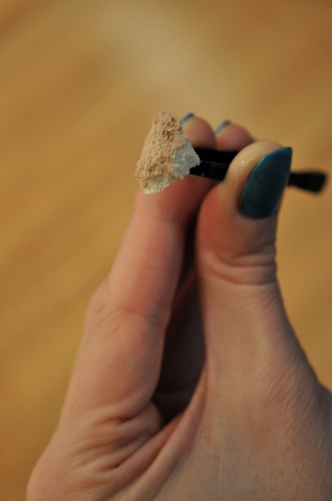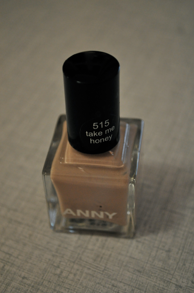 Og så kommer det som gjør dette designet til himmel og ikke bare blå negler: skyene. Riv av en bit av en sminkesvamp og velg en lys rosafarge eller en annen lys farge som det er realistisk å finne på himmelen. Grunnen til at jeg ikke bare kjører på med hvitt med en gang, er at jeg ønsker litt mer realistiske skyer enn bare tegneserieskyer. For ekte skyer er ikke bare hvite. Tenk litt på det neste gang du ser opp mot himmelen. Altså, jeg starter med en slags beige. Nærmere bestemt Anny sin Take me honey.