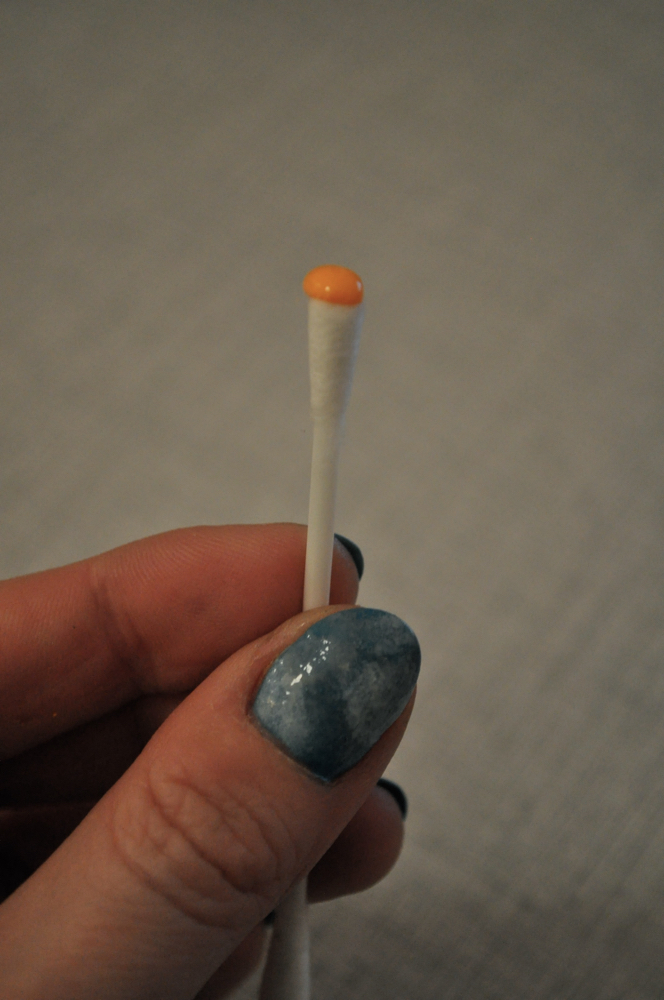 For å lage selve formen på sola brukte jeg en q-tip. Hot tips: Press den mot et papir et par ganger før du setter i gang, for å få av den overflødige lakken.
