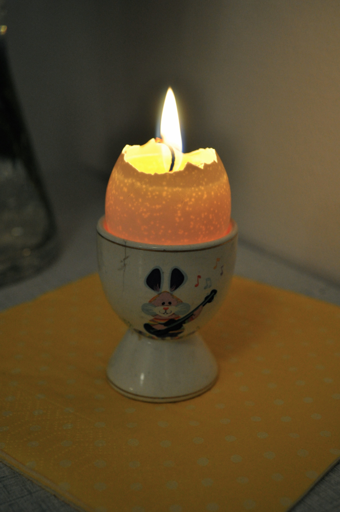 Dette er en videreutvikling av duftlys-oppskriften jeg postet forrige uke. Det er jo snart påske og på tide å begynne å tenke på hva man skal pynte huset med. Dette lyset er en enkel og dekorativ liten sak som gir akkurat den rette påskestemningen.