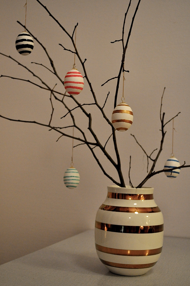 Kähler-vaserHar du en eller to Kähler-vaser for mye, og vet ikke helt hva du skal bruke dem til? Finn noen kvister og dekorér med selvmalte Kähler-egg. Enkelt og dekorativt og veldig i tiden. Det er jo påske snart!