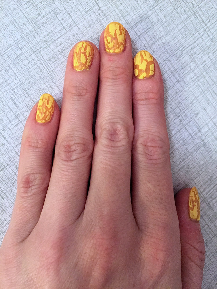 Klokka er nå over ti på kvelden, så jeg tør ikke ta på top coat, i frykt for at den ikke skal tørke i tide før sengetid. Jeg har en lei tendens til å kline utover neglelakk i søvne. Men jeg er fornøyd med resultatet så langt! Og jeg lærte et top coat-triks på nettet i dag, som vi får se om jeg klarer å dra nytte av i morgen: bruk en hurtigtørkende top coat, og ha på nok lakk til at børsten ikke trenger å berøre neglen. Da skal ikke fargene gli over i hverandre. Visstnok. Vi får se da. Takk for meg for denne gang, i alle fall. DIY!