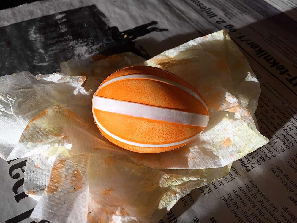 Årets prosjekt fra min side var «eggeskall med teip i fargebad». Enklere kan det egentlig ikke sies. Jeg hadde ingen plan utover dette, og ante ikke hva jeg ville ende opp med.