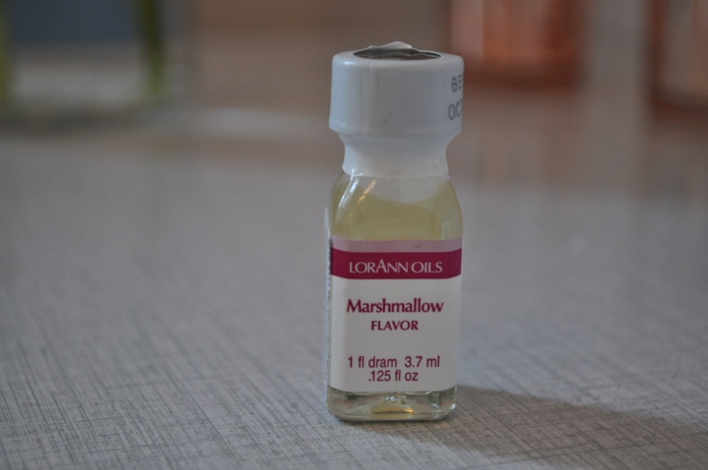 Jeg gikk for marshmallow denne gangen, men du kan selvsagt velge den smaken du liker best. Merket er av samme type som kirsebæressensen jeg brukte til å lage duftlys. Igjen brukte jeg hele flaska, men her får du bare prøve deg frem. De koster 25,- på Cacas, så det er ikke den helt store formuen som går tapt uansett.