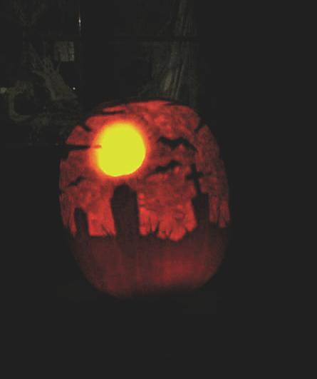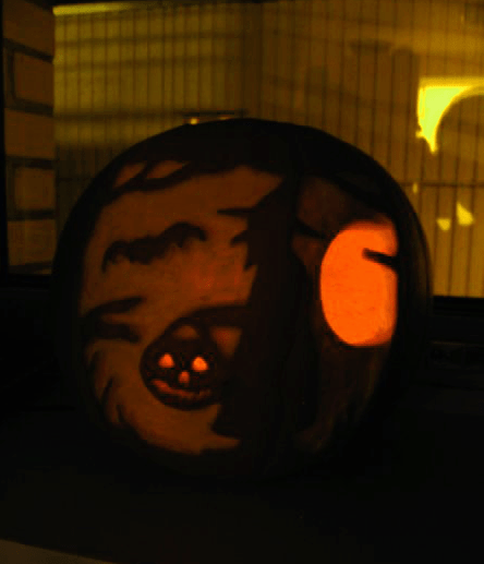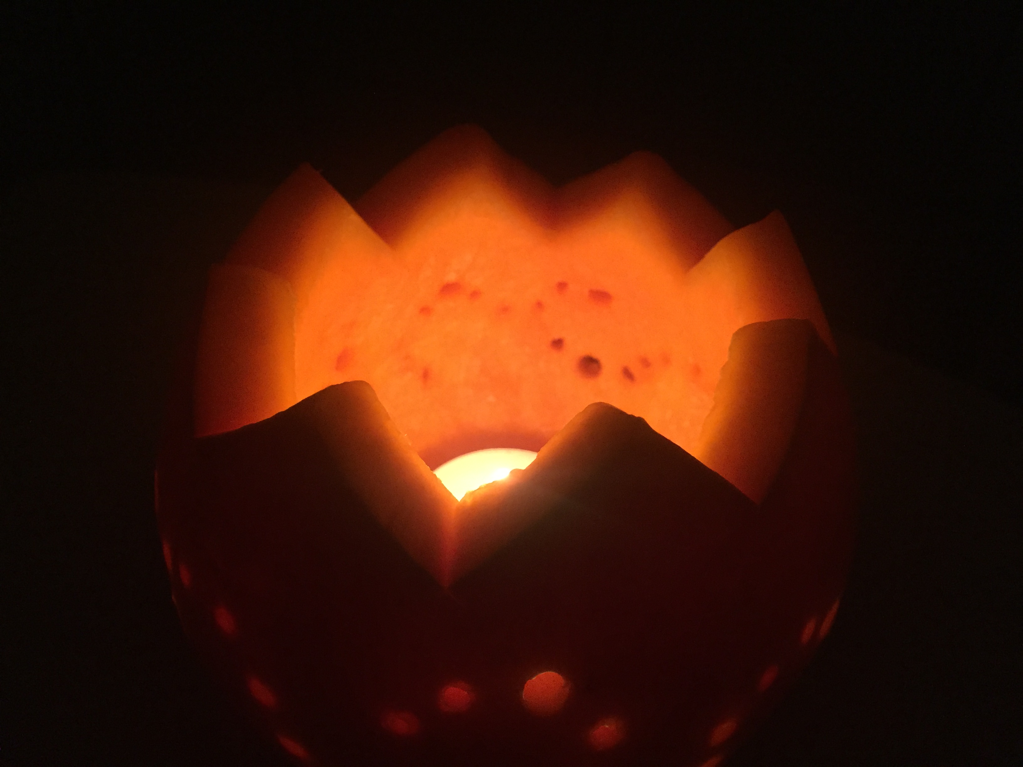 Siden åpningen ble såpass stor, er årets gresskarlykt best egnet for innendørs bruk. Og har man vegger rundt lykten, kan det være fint å skjære ut detaljer som skaper effekt av lys og skygge. En sikksakk-kant øverst kaster f.eks. noen ganske stemningsfulle skygger på veggene rundt.