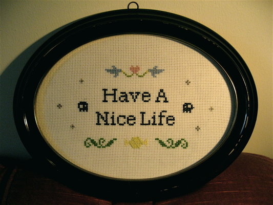 Jeg hadde en periode i 2007 da alle fikk såkalte geriljabroderier i gave. Veldig gøy å leke seg med ord og dekor og gamle rammer, og se at gavene blir satt pris på.